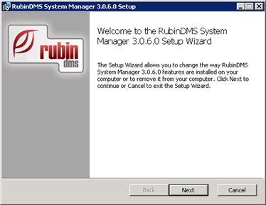3.1 Click on the 'RubinDMS DOAS' Shortcut in the Start menu -> 'Programs' -> 'RubinDMS System Manager' folder.